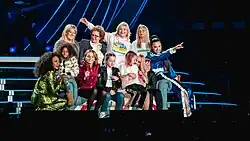 The group have performed the song on their four tours, the Spiceworld Tour, the Christmas In Spiceworld Tour, the Return of the Spice Girls Tour and the Spice World - 2019 Tour.[37][38][39][40] It remained in the group's live set after Halliwell's departure at the end of the European leg of the Spiceworld Tour. The performance at the tour's final concert can be found on the video: Spice Girls Live at Wembley Stadium, filmed in London, on 20 September 1998.[41] During the Return of the Spice Girls tour, "Mama" was performed as the second song from the show's fifth segment. All five girls stood together holding hands to perform it, while the LED screens in the background showed photos of their mothers holding baby pictures of the group, and a montage of them and their children.[42][43] For the British shows, fifty young girls from the Capital Children's Choir dressed in white came out from a platform and lined the stage against the backdrop screens to sing with the Spice Girls.[44]