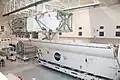 At the SSPF, ISS modules, trusses and solar arrays are prepped and made ready for launch. In this iconic building are two large 100,000 class clean work environment areas.[27] Workers and engineers wear full non-contaminant clothing while working. Modules receive cleaning and polishing, and some areas are temporarily disassembled for the installation of cables, electrical systems and plumbing. Steel truss parts and module panels are assembled together with screws, bolts and connectors, some with insulation. In another area, shipments of spare materials are available for installation. International Standard Payload Rack frames are assembled and welded together, allowing the installation of instruments, machines and science experiment boxes to be fitted. Once racks are fully assembled, they are hoisted by a special manually operated robotic crane and carefully maneuvered into place inside the space station modules. Each rack weighs from 700 to 1,100 kg, and connect inside the module on special mounts with screws and latches.[28]