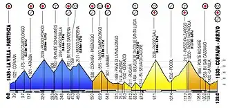 ‘Time’ was the main theme. 8,969 riders left La Villa in a 36-minute long train, the time it took the cyclists to enter the competition to the rhythm of live music and encouragement. There were large numbers and a huge demand for participation (32,600 people), with the usual formula: a fixed number of participants, car-free Dolomite passes, charity initiatives and eco-sustainability, with the use of electric cars and motorbikes to transport the jury and the race organisers. The "mür dl giat" was the great new feature.[7] All cyclists on the medium and long route, during the second passage through La Villa, were asked to face a final tough challenge: 200 metres (660 ft) after the turn for Corvara, then had to climb the  "mür dl giat" (the cat's wall), as the inhabitants of La Villa are known as ‘cats’. This was a deviation with a 19% grade that crossed La Villa. At the top it re-joined the main route to the finish line in Corvara.