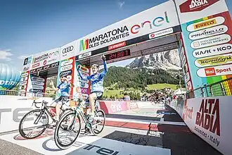 The Maratona dles Dolomites (Ladin for "Dolomites Marathon"; Italian: Maratona delle Dolomiti), is an annual single-day road bicycle race covering seven mountain passes in the Dolomites. Open to amateur cyclists, the Maratona—with 9,000 riders chosen from 30,000 applicants,[1] from over 70 nations—is one of the biggest Italian Granfondo bicycle races.[2][3] National Geographic described it as "one of the biggest, most passionate, and most chaotic bike races on Earth."[4]