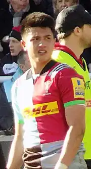 Marcus Sebastian Smith (born 14 February 1999) is an English professional rugby union player who plays as a fly-half for Premiership Rugby club Harlequins. Born in the Philippines, he represents England at international level after qualifying on ancestry grounds and residency having lived in the UK since the age of 13.[1][2][3]