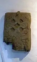 A stone slab showing a six-spoked 'cart-wheel' on the front and a linear 'ring cross' on the reverse. Although most linear crosses are dated rather earlier than the sculptured crosses, these are most likely to have been made at the same time.[1]