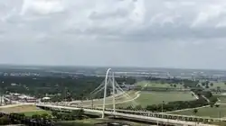 The Margaret Hunt Hill Bridge is a cable-stayed bridge in Dallas, Texas, that spans the Trinity River. The bridge is named for Margaret Hunt Hill, an heiress and philanthropist.[4] The bridge was constructed as part of the Trinity River Project. Designed by Santiago Calatrava, it is one of three such bridges planned to be built over the Trinity; the second, the Margaret McDermott Bridge, is completed; the third cancelled. The span parallels the Ronald Kirk Bridge, a walking bridge that was previously the Continental Avenue bridge.[5]