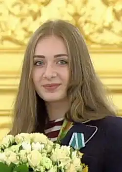 Maria Yuryevna Tolkacheva (Russian: Мария Юрьевна Толкачёва, IPA: [mɐˈrʲijə təlkɐˈtɕɵvə]; born 8 August 1997) is a Russian group rhythmic gymnast. She is the 2016 Olympics Group all-around champion, a four-time (2015, 2017-2019) World Group all-around champion, the 2015 European Games Group all-around champion and three-time European Championships (2014, 2016, 2018) Group all-around gold medalist.