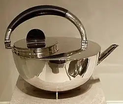 Brandt's tea set designs are characteristic of the early phases of modernism. Form predominates over ornament and there is a clear sense of at least symbolic compatibility with modern mass-production technology.[17]