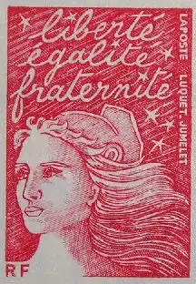 Marianne du 14 Juillet is a definitive stamp series issued in France between 14 July 1997 and 2005. She replaced the Marianne du Bicentenaire series and was replaced by Marianne des Français series. It was designed by Ève Luquet and engraved by Claude Jumelet.
