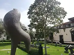 The house is surrounded by a garden of sculptures that had changing results affected by the urban modifications of its surroundings. It is composed of two levels being the first one of adobe and the second one of quincha brava. On the first floor there is a small central courtyard with a fused iron fountain. Its façade is colorful and on the right hand side, it reproduces, on a smaller scale, the front of the famous Palace of the Admiral of the city of Cusco. The workshop of the sculptor Marina Núñez, located on the second level, has been considered as the heart of the house and the intervention revolves around it.[15]