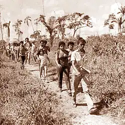 Marina Silva was born Maria Osmarina da Silva in the small village of Breu Velho, 70 km outside Rio Branco, Acre. Silva is a descendant of Portuguese and black African ancestors in both her maternal and paternal lines.[8] She was one of eleven children in a community of rubber tappers on the Bagaço rubber tree plantation (Portuguese Seringal Bagaço), in the western state of Acre. Growing up, she survived five bouts of malaria in addition to cases of hepatitis and metal poisoning.[9][10]