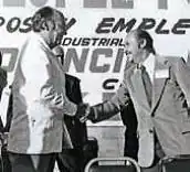 President José López Portillo with Mario H. Gottfried Gutiérrez, at the inauguration of the new factory, Potencia Industrial, S.A., in 1976.