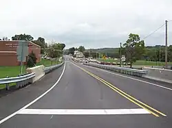 Main Street in Marion Center as viewed from US 119. Marion Center Area High School is located on the left and the East Mahoning Community Park is on the right.