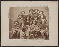 On January 2, 1865; a group of nine former prisoners and three of their North Carolina mountain guides, made their way to Gay Street in Knoxville. After checking in with Provost Marshal General Samuel P. Carter's headquarters,[12] they went next door to the photography studio to Theodore M. Schleier and posed for a group photograph.