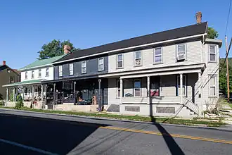 The district includes fifty-eight contributing buildings and one contributing site. The buildings primarily date from circa 1845 to 1870 and include notable example of the Gothic Revival style. They are primarily of wood construction, and reflect the development of the community as a local service and commercial center for local agricultural and industrial customers. Notable buildings include the former Town Hall, former Indian Queen Hotel, former James Creek School House, former Methodist Episcopal Church, and St. Matthew's Lutheran Church. The Union Cemetery is the contributing site.[2]