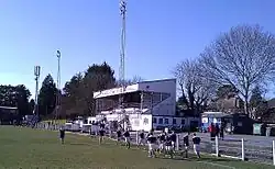 The club played at Aldermeadow until 1898, when they moved to Crown Meadow, now known as the Riley Recreational Ground.[2][11] They were forced to relocate to Star Meadow in 1919; the ground was unenclosed and the club had to eventually drop into the Reading & District League.[2] In 1928 they moved to the Alfred Davis Memorial Ground, named after their long-serving secretary who had died in 1924.[2] A wooden grandstand was built on one side of the pitch in 1930, with a covered area erected on the Green Verges side in 1950.[11] The Green Verges stand was replaced during the 1990s.[11] Terracing was installed on all four sides in 1985, and another covered stand was built at the Trinity End in 1991.[11]