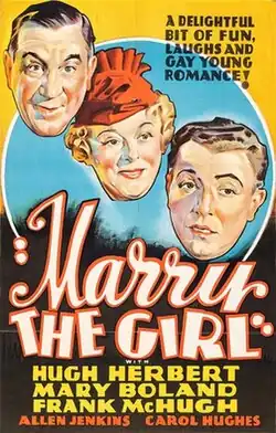 Marry the Girl is a 1937 American romantic comedy film directed by William C. McGann. The 68 minute film, set at a newspaper syndicate, was written by Sig Herzig and Pat C. Flick, shot by cinematographer Arthur L. Todd, and was produced by Bryan Foy and Jack L. Warner under the Warner Bros. banner.[1]