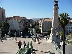 Marseille-Saint-Charles (French: Gare de Marseille-Saint-Charles) is the main railway station and intercity bus station of Marseille, France. It is the southern terminus of the Paris–Marseille railway and the western terminus of the Marseille–Ventimiglia railway.