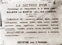 Invitation to the opening of the exhibition La Section d'Or, Galerie La Boëtie, Paris on 5 March 1920