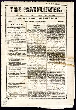 November 15, 1861 issue of The Mayflower, "devoted to the interests of women." It was published in Peru, Indiana, by Lizzie Bunnell and Mary F. Thomas.