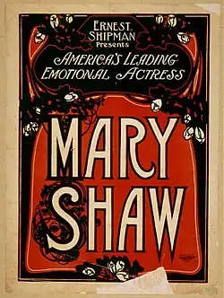 2. ^ a b c Mroczka, Paul (2000). "Shaw, Mary (1854-1929), actress and suffragist". American National Biography. doi:10.1093/anb/9780198606697.article.1801053. ISBN 978-0-19-860669-7. Retrieved 2022-02-24.