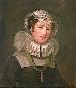 Following her brief acting career, Mary Woffington returned to Teddington and continued to court the local gentry. By mid 1746, she courted Robert Cholmondeley, a disgraced[note 1] captain in the 3rd Foot Guards and the second son of George Cholmondeley, 3rd Earl of Cholmondeley.[4][5] The couple married on 30 November 1746 at St Anne's Church, Soho, without the approval of either of their families. The marriage was initially opposed by Earl Cholmondeley and Horace Walpole, Robert's maternal uncle. In a letter to the Duke of Newcastle, the already-impoverished Earl Cholmondeley wrote the marriage had alarmed his creditors, forcing him to sell much of his remaining property.[4][6] Walpole wrote to Sir Horace Mann: "My family has just undergone a severe trial: my nephew has married the sister of a play-actress", and stated the marriage threatened to ruin the Cholmondeley family.[4][5] Upon meeting Woffington, however, Walpole was charmed by "her beauty, grace, and wit", and he insisted on introducing her to the Dauphin of France. Earl Cholmondeley was convinced by Peg, who said: "My lord, I have much more reason to be offended at it than your lordship, for I had before but one beggar to maintain, and now I have two", because the couple lived in a house in Westminster that Peg rented and furnished.[5]
