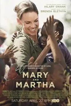 Mary and Martha is a 2013 British-American television film starring Hilary Swank and Brenda Blethyn, and directed by Phillip Noyce. Based on a screenplay by Richard Curtis, it was produced by Working Title Television, in association with the BBC and NBCUniversal. The film had its UK premiere on 1 March 2013 on BBC One and premiered in the US on HBO on 20 April 2013. The film is based on a true story. The film centers around two mothers, one British, one American, who share only one thing in common: the loss of their sons to malaria. After the deaths of their sons, the mothers decide to travel to Africa to help with malaria prevention. The film was nominated for the Humanitas Prize.[1]