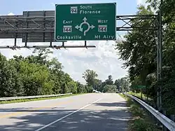 In 1956, MD 94's present termini were established. The state highway was extended from south of Florence to the Patuxent River; the highway was also transferred to county maintenance from Old Frederick Road north to Daniel. MD 94 was relocated to form a four-way intersection with MD 144 when its interchange with I-70 was constructed in 1974.[11] The state highway previously had a short concurrency with MD 144 in Lisbon between the road south to Florence and the highway north to Woodbine; the old alignment remains south of I-70 as Madison Street and north of the Interstate as Old Woodbine Road.[12] The first modern roundabout constructed in Maryland was completed at the intersection of MD 94 and MD 144 in 1993.[13][14] The roundabout with Old Frederick Road at the state highway's northern terminus was built in 1998.[14]