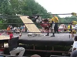 Masada bodyslamming Scotty Vortekz onto cinderblocks.