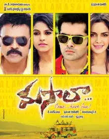 Masala is a 2013 Indian Telugu-language action comedy film written and directed by K. Vijaya Bhaskar. It is produced by D. Suresh Babu and Sravanthi Ravi Kishore on Suresh Productions and Sri Sravanthi Movies. The film stars Venkatesh, Ram Pothineni, Anjali and Shazahn Padamsee with music composed by S. Thaman. It is a remake of the 2012 Hindi film Bol Bachchan [3] The film released worldwide on 14 November 2013.[2] Upon release, the film received mixed reviews from critics with appreciation to the cast performances.[4]