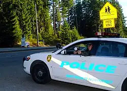 U.S. Navy Master-at-Arms performing traffic enforcement of the installation's speed limit