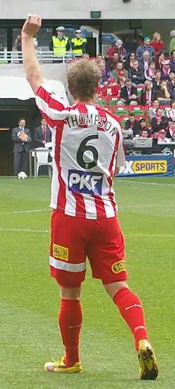 Thompson was made captain of the Jets in the 2009-2010 due to a new Newcastle Jets policy that the player who has the most top-flight appearances for the club would receive the captain's armband.[1]