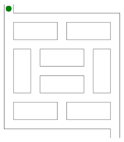 Another concern is that care should be taken to begin wall-following at the entrance to the maze. If the maze is not simply-connected and one begins wall-following at an arbitrary point inside the maze, one could find themselves trapped along a separate wall that loops around on itself and containing no entrances or exits. Should it be the case that wall-following begins late, attempt to mark the position in which wall-following began. Because wall-following will always lead you back to where you started, if you come across your starting point a second time, you can conclude the maze is not simply-connected, and you should switch to an alternative wall not yet followed. See the Pledge Algorithm, below, for an alternative methodology.