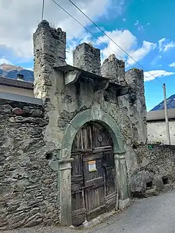In the 13th century, the Venosta family built the "castle of Mazzo", of which today only the tower remains.[8] The castle was part of a fortification system connecting the castles of Grosio and Tovo that allowed to control the movement of merchants and armies to and from the German-speaking countries, and the two entrances to Bormio (namely the Val Grosina and Valdisotto).[4]