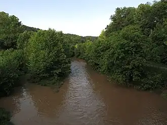 A short distance downstream of this confluence, it collects a third significant headwaters tributary, the Talkington Fork.