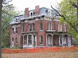 In 1925 or 1936,[6] the mansion was purchased by Paul A. Laichinger, who rented rooms out to others and lived there until his death in 1945[7] or 1951.[8] While the house was abandoned for years thereafter, there was some interest in demolishing it and converting the land into a shopping center, though this fell through due to zoning issues. In the meantime, the house was ransacked for what was left behind, including its furnishings, wooden banisters and even the toilets, becoming a victim of vandalism and negligence.