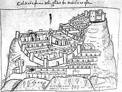 By the 3rd century BC the Romans had gained control over much of southern Spain; once coming under Roman hegemony this site was later referred to as Asido Caesarina.[3] In 571, Visigothic king Liuvigild attacked the Byzantines and captured Medina Sidonia.[4] In 712, the town was conquered by the Muslim commander Musa ibn Nusayr, and became the capital of the province of Sidonia in the emirate of Spain. The city was attacked by Vikings in 842.[5] It returned to Christian hands with Alfonso X of Castile, in 1264, becoming a stronghold along the frontier with the last Muslim country in the Iberian Peninsula, the Kingdom of Granada. It was also the seat of several military orders.