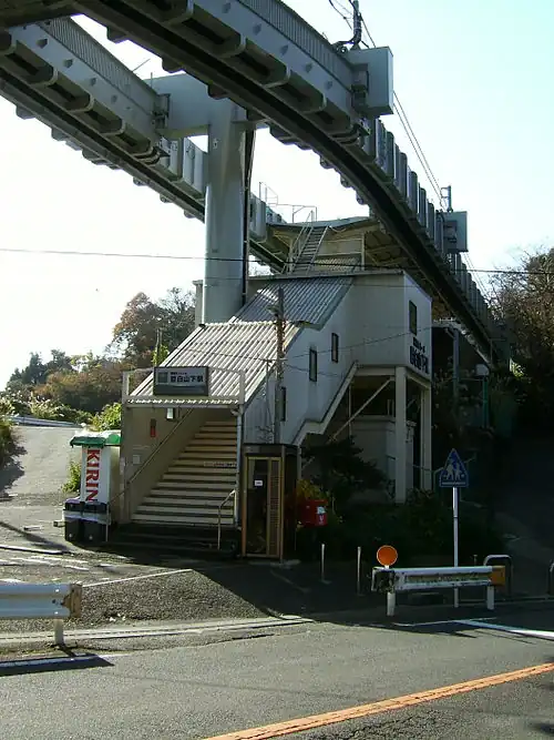 Mejiroyamashita Station (目白山下駅, Mejiroyamashita-eki) is a monorail train station on the Shōnan Monorail Enoshima Line located in Fujisawa, Kanagawa Prefecture, Japan. It is located 6.2 kilometres (3.9 mi) from the northern terminus of the Shōnan Monorail Enoshima Line at Ōfuna Station.