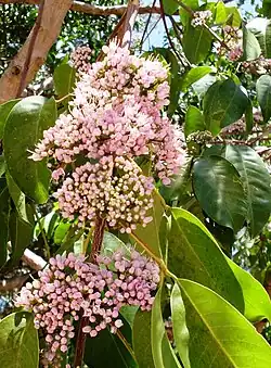 Melicope elleryana, commonly known as pink flowered doughwood, pink evodia, corkwood,[2] or saruwa,[3] is a species of rainforest shrub or tree in the family Rutaceae, and is native to New Guinea, parts of eastern Indonesia, the Solomon Islands and northern Australia. It has trifoliate leaves and pink to white, bisexual flowers arranged in panicles in leaf axils.