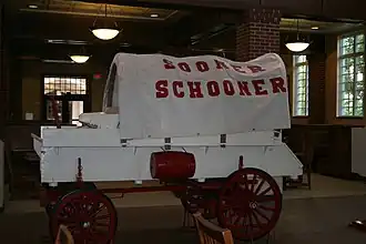 A downsized model of the Sooner Schooner sits inside the Will Rogers dining area in the Union.