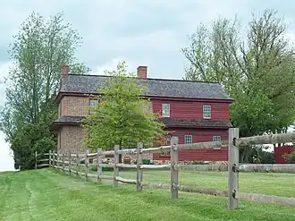 The Mercer Brown House is a historic house located at Rising Sun, Cecil County, Maryland, United States. It consists of three distinct portions: a two-story, three-bay, gable-roofed Flemish bond brick part dating to 1746; a three bay wide frame portion of the house dating to the early and late 19th century; and a log pen addition. The house is an example of the Pennsylvania Quaker building tradition in Maryland. The property also has an early-20th century bank barn.[2]