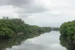 It separates the municipalities of Duque de Caxias and São João de Meriti (north) from the state capital of Rio de Janeiro (south). Its mouth is at Guanabara Bay.