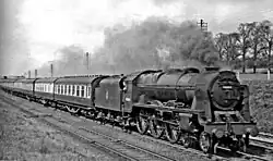 The Merseyside Express was a named passenger train that ran non-stop between Euston and Liverpool Lime Street stations on the West Coast Main Line in the 1950s, typically hauled by Princess class Pacifics. Its final journey was in 1962. Lizzie, named after the future queen when she was just seven years old, has held the world record for continuous high-speed travel by any steam locomotive since 1936.[1]