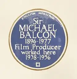 On his return, he found Gaumont in financial ruin and joined MGM-British Studios that November. His assistant Edward Black took over the studio.[5] The year and a half Balcon spent at MGM British was a trying period for Balcon, who clashed frequently with studio head Louis B. Mayer. During this period, Balcon lived at 57a Tufton Street, Westminster. Today a commemorative plaque marks his former home.[4]