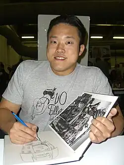 Choi sketching Big Barda at the Big Apple Convention in Manhattan, October 17, 2009