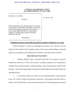 216. ^ a b Feuer, Alan; Weiser, Benjamin (July 21, 2020). "Michael Cohen Claims in Suit He Was Imprisoned to Stop Trump Book". The New York Times. Archived from the original on December 18, 2020. Retrieved July 23, 2020.