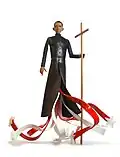 Leavitt has created more political satire including his sculpture of Barack Obama in a Keanu Reeves/"Matrix" style robe. With a large wood cross and tentacles made of stars and stripes, the 2008 commentary was designed to counter-act negative stereotypes of the candidate during his first Presidential campaign.[52] In 2013 Leavitt sculpted a satirical portrait of Donald Trump. The one-off piece was part of Leavitt's "Empire Peaks" series. It depicted the reality TV star as the Star Wars character Darth Vader.[53][64][65]