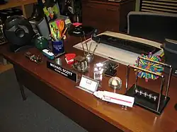 The show often uses the joke "that's what she said", originally popularized by the Wayne's World sketch on Saturday Night Live.[22] In the original BBC version of The Office, Ricky Gervais's character David Brent frequently uses the similar phrase "as the actress said to the bishop" as an inappropriate joke. Michael compulsively inserts the phrase as a sexually suggestive double entendre, finding it amusing in even the most inappropriate circumstances.[23][24]
