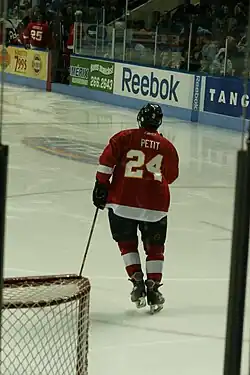 Petit was drafted by the Vancouver Canucks in the 1982 NHL Entry Draft in the first round, eleventh overall. During his 17 seasons in the NHL he played for ten different NHL teams, which as of 2017 was tied along with J. J. Daigneault, Mathieu Schneider, Jim Dowd, Olli Jokinen and Lee Stempniak as the second-most by any player.[3][4][5] Petit was the first to hit the ten-team mark.[6]