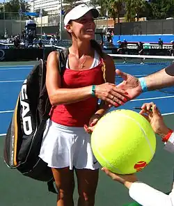 On 16 July 2008, she nearly won the best victory of her career, narrowly losing to former world No. 1 player, Serena Williams, in three sets.[6] The day before, she had beaten world No. 34, Gisela Dulko, in straight sets.[7]