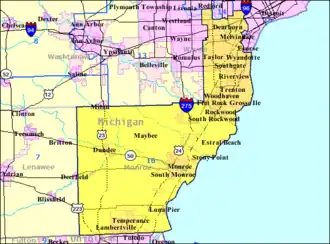 Michigan's 16th congressional district is an obsolete United States congressional district in Michigan . It covered the communities of Dearborn , Downriver and Monroe County .[ 1]