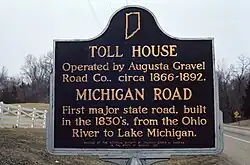 - ^ "Indiana State Historic Architectural and Archaeological Research Database (SHAARD)" (Searchable database). Department of Natural Resources, Division of Historic Preservation and Archaeology. Retrieved August 1, 2016. Note: This includes Mary Evans Harrell Ochsner (n.d.). "National Register of Historic Places Inventory Nomination Form: Michigan Road Toll House" (PDF). Retrieved August 1, 2016. and Accompanying photographs