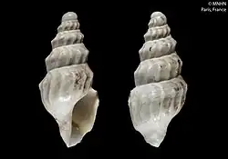 Shell of Micropleurotoma travailleuri (lectotype at MNHN, Paris)